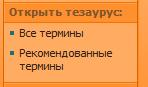 Поэтому меню на левой полосе включает ряд подпунктов для действия "Открыть тезаурус", которые открывают то или иное представление тезауруса. Например: